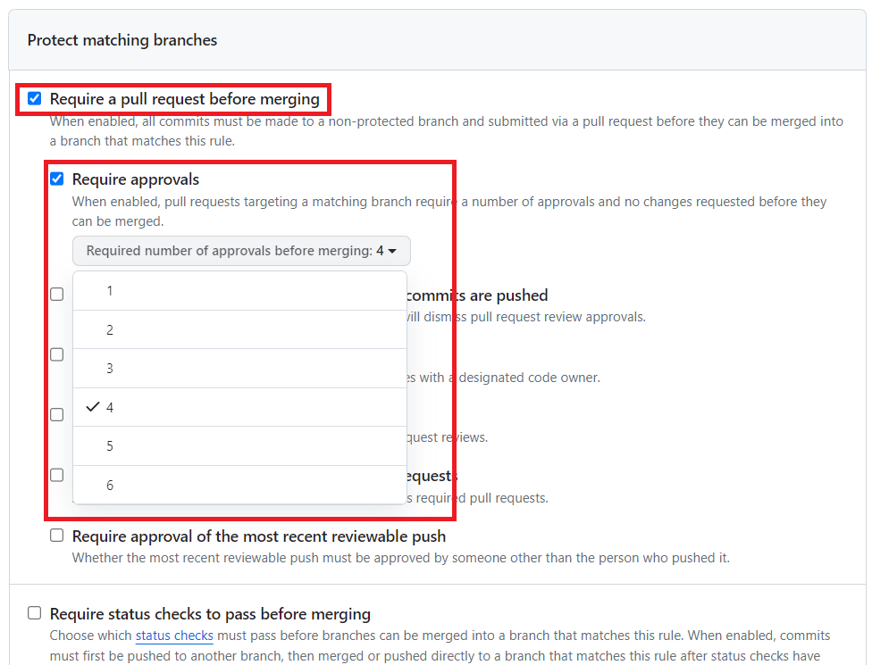 따라서 브랜치 규칙을 정해 몇명 이상 approve를 해야 merge할 수 있도록 설정한다.