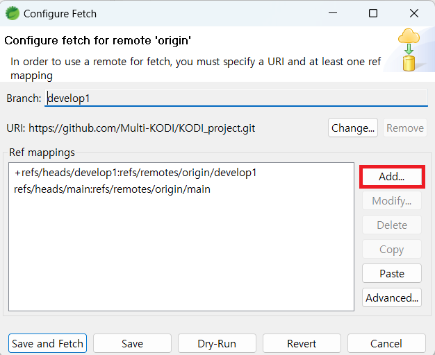 5. 선택한 브랜치 확인하고 Save and Fetch