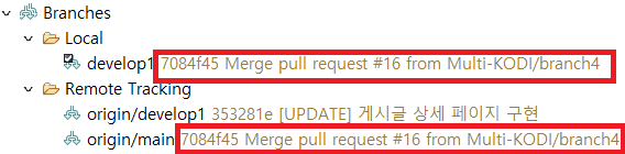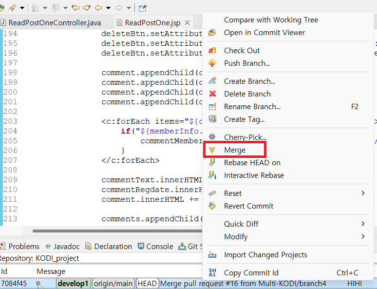 - 방법 2 - History에서 merge할 원격 Repository와 메시지 선택