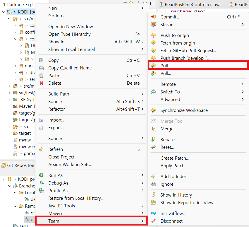 3. 특정 커밋한 내용만 pull하고 싶으면 해당 메시지 선택하고 Cherry-Pick 선택