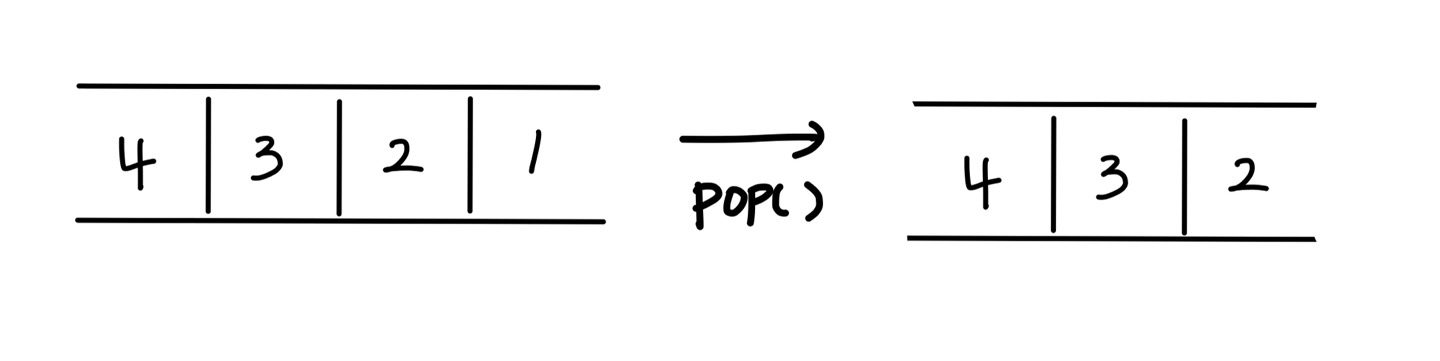 stack = [] stack.append(1) # 삽입 stack.append(2) # 삽입 stack.append(3) # 삽입 stack.append(4) # 삽입 stack.pop() # 삭제 print(stack[::-1]) # 최상단 원소부터 출력, [3, 2, 1] print(stack) # 최하단 원소부터 출력, [1, 2, 3]