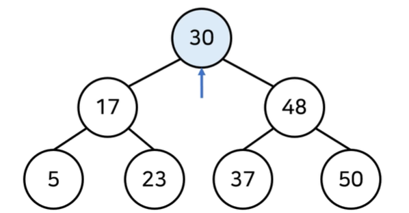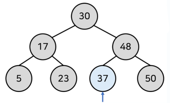 - 현재 노드와 찾는 원소 37 비교