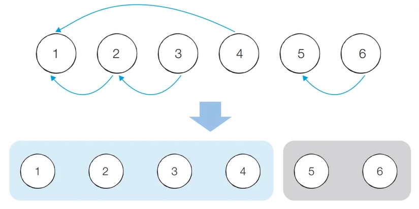 - 모든 합집합(Union) 연산을 처리할 때까지 1번의 과정을 반복한다.