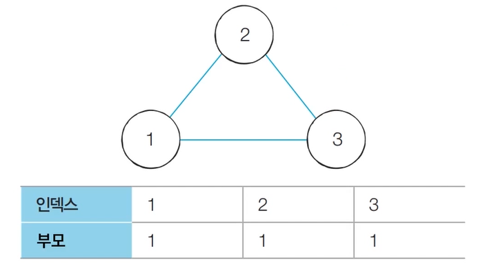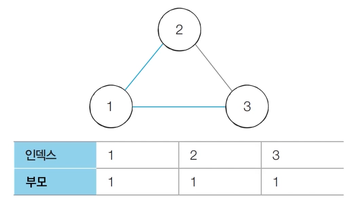 - [초기 단계] 노드의 개수 크기의 부모 테이블을 초기화한다.