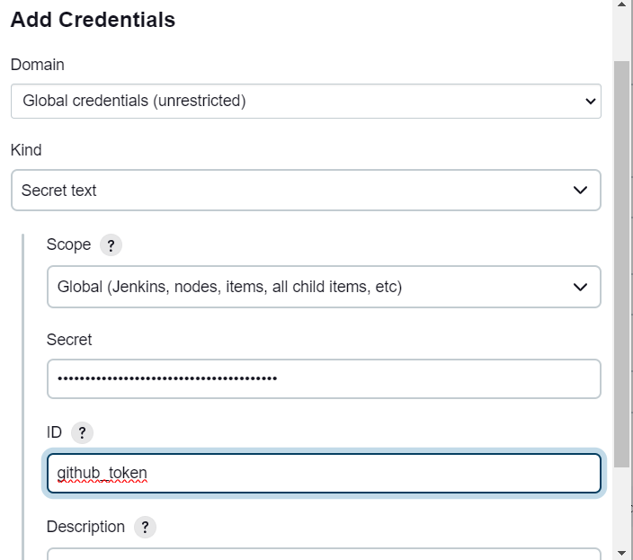 - Secret text 클릭 - github 토큰 입력