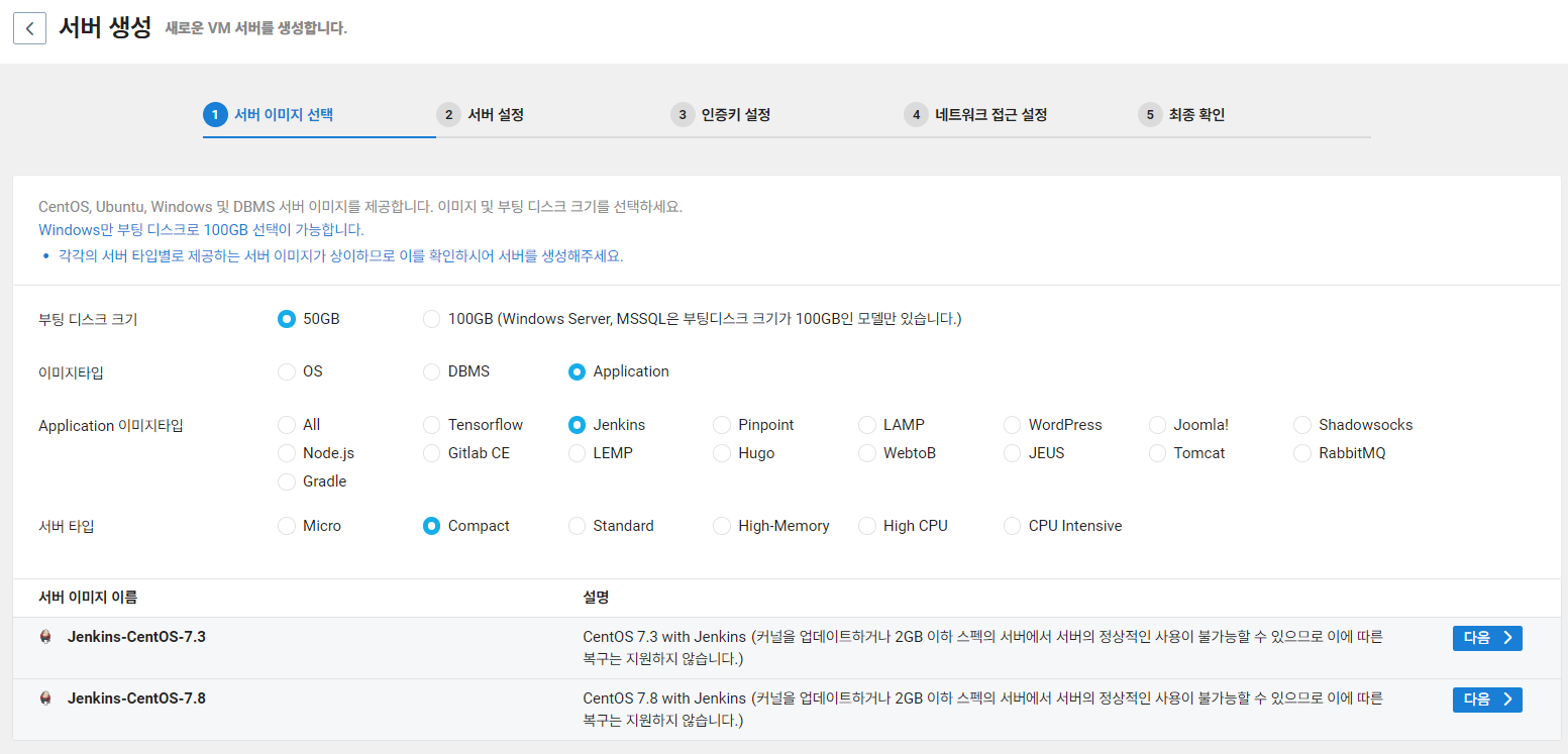 - 가장 최근 버전의 Jenkins-CentOS-7.8 선택