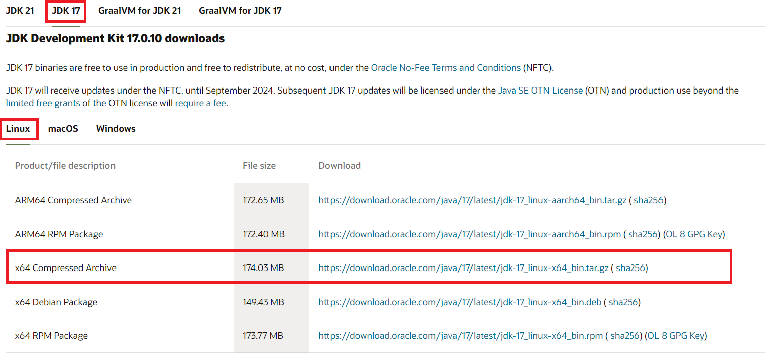 - JDK 17 - Linux - x64 Compressed Archive