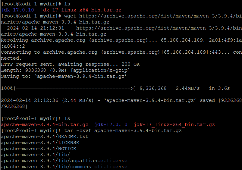 - wget https://archive.apache.org/dist/maven/maven-3/3.9.4/binaries/apache-maven-3.9.4-bin.tar.gz