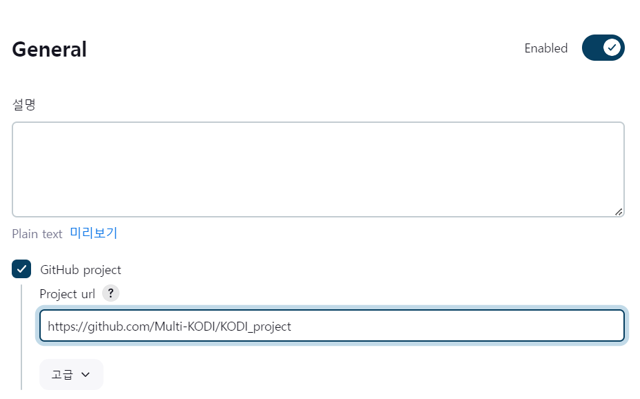 - Github Project URL 입력