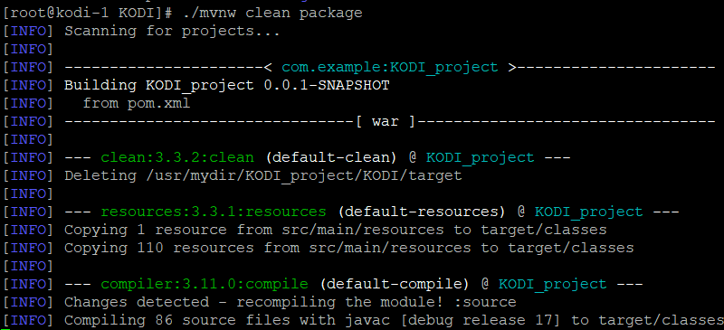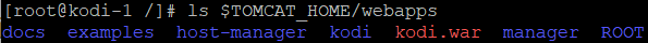 - cp /usr/mydir/KODI_project/KODI/target/KODI_project-0.0.1-SNAPSHOT.war $TOMCAT_HOME/webapps/kodi.war
