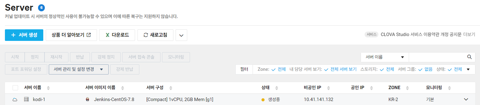 - 상태가 생성중 - 부팅중 - 설정중 - 운영중으로 변경되는지 확인