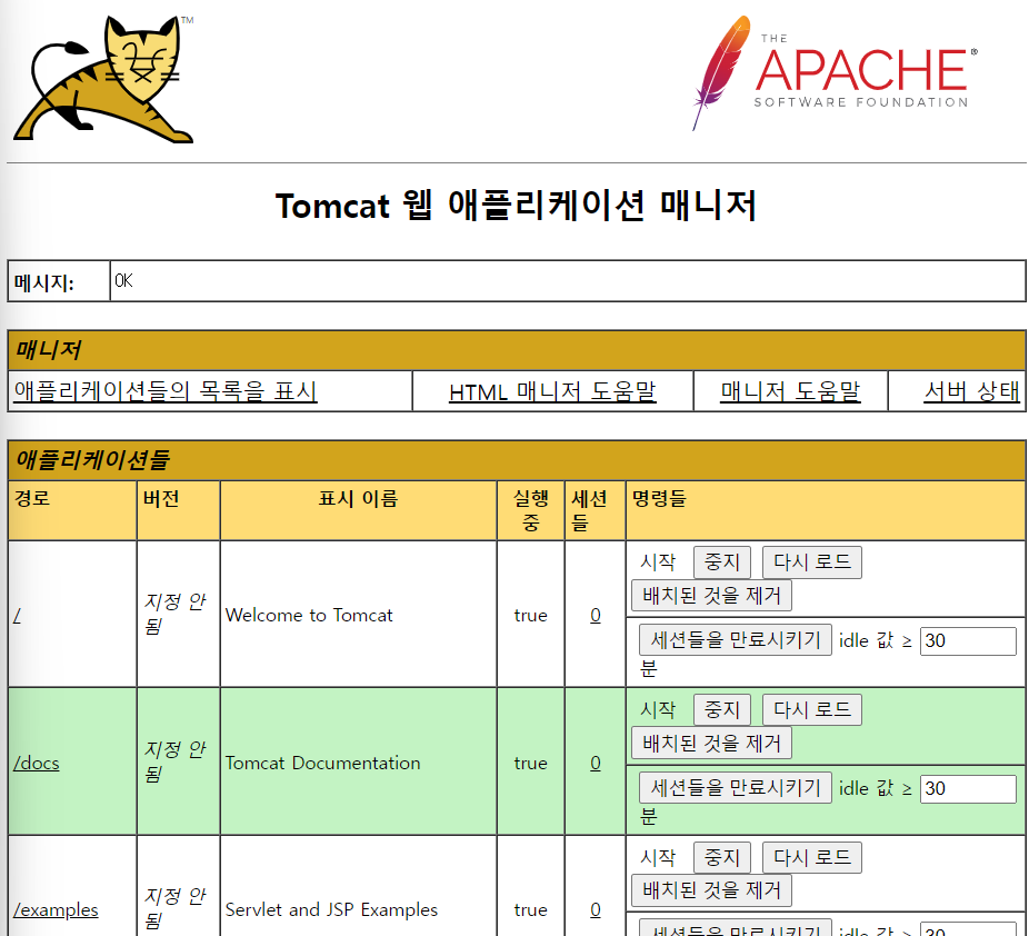 - http://공인IP:8080/manager/html로 접속