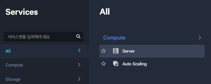 1. Services - Compute - Server 선택