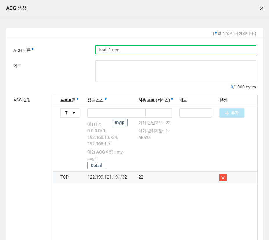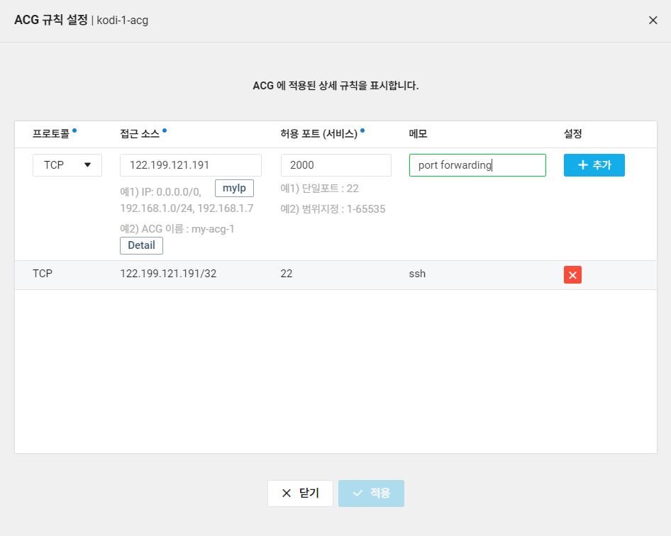 - 22번 포트는 앞서 설정해놓았지만 2000번 포트가 새로 생겼으므로 추가 설정 필요