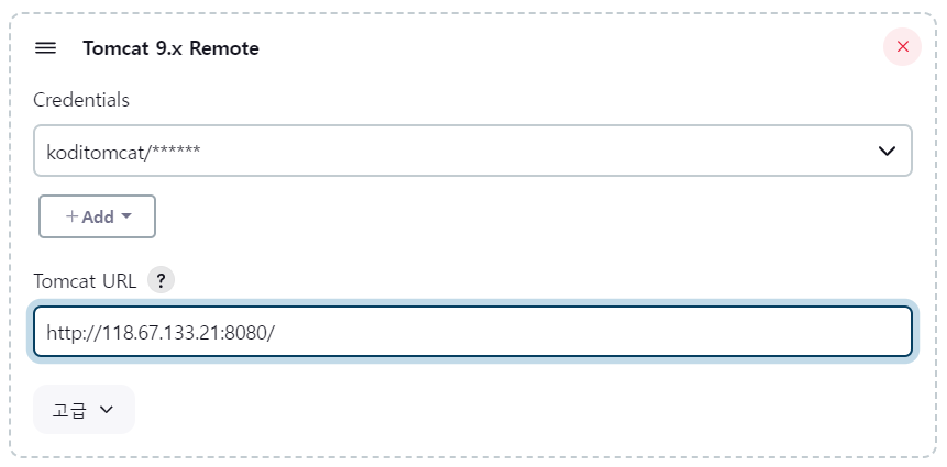 - Jenkins에서 Tomcat 9.x Remote - Add - Jenkins 선택