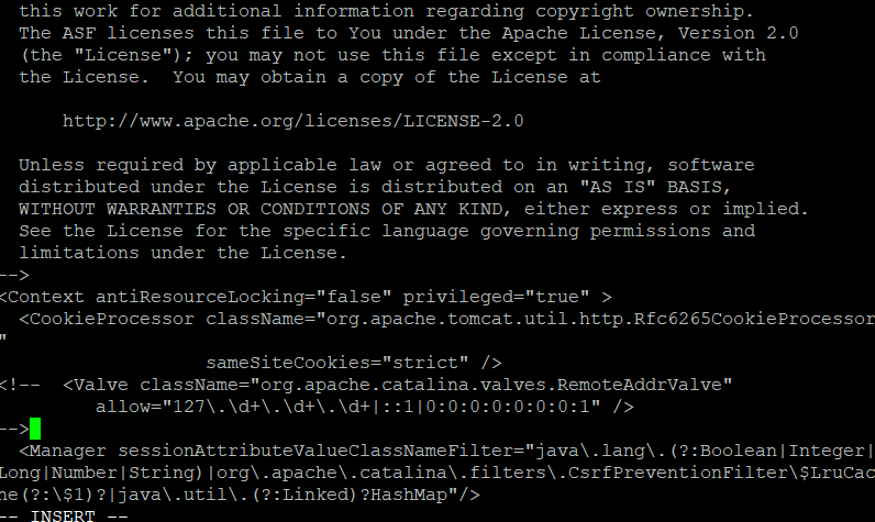 - vi $TOMCAT_HOME/webapps/manager/META-INF/context.xml