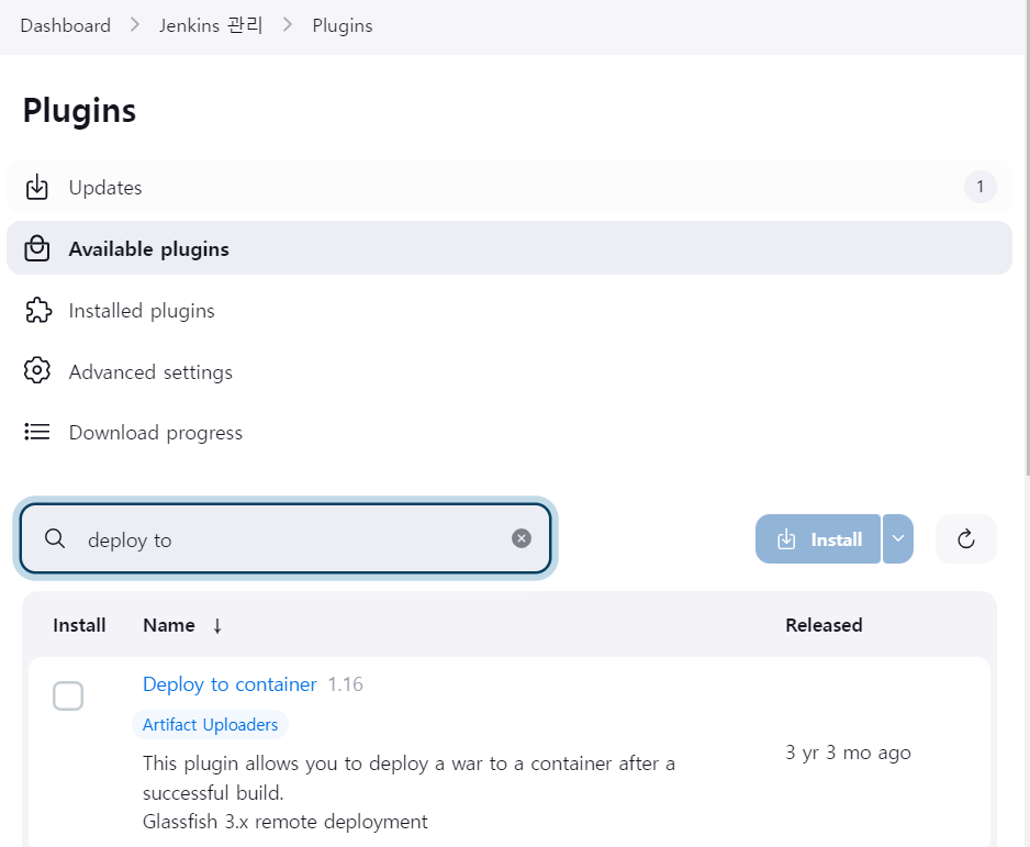 - Deploy to container 설치