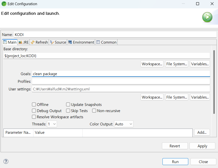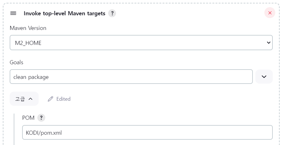 - JDK 이름, MAVEN_HOME 경로 입력