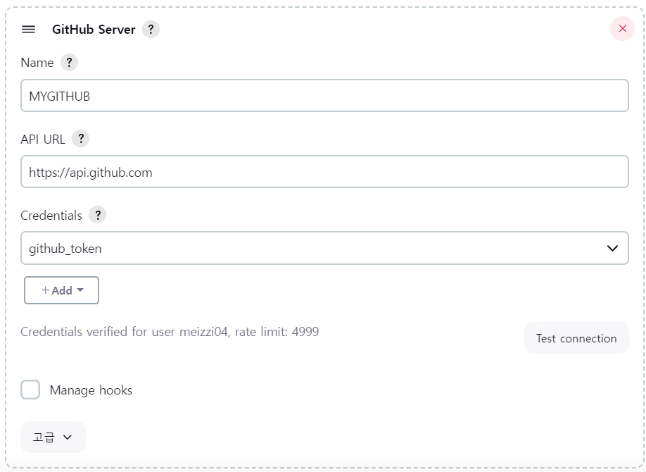 - Test Connection 후 저장