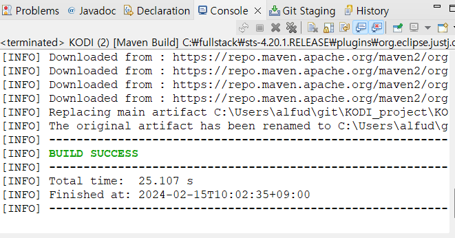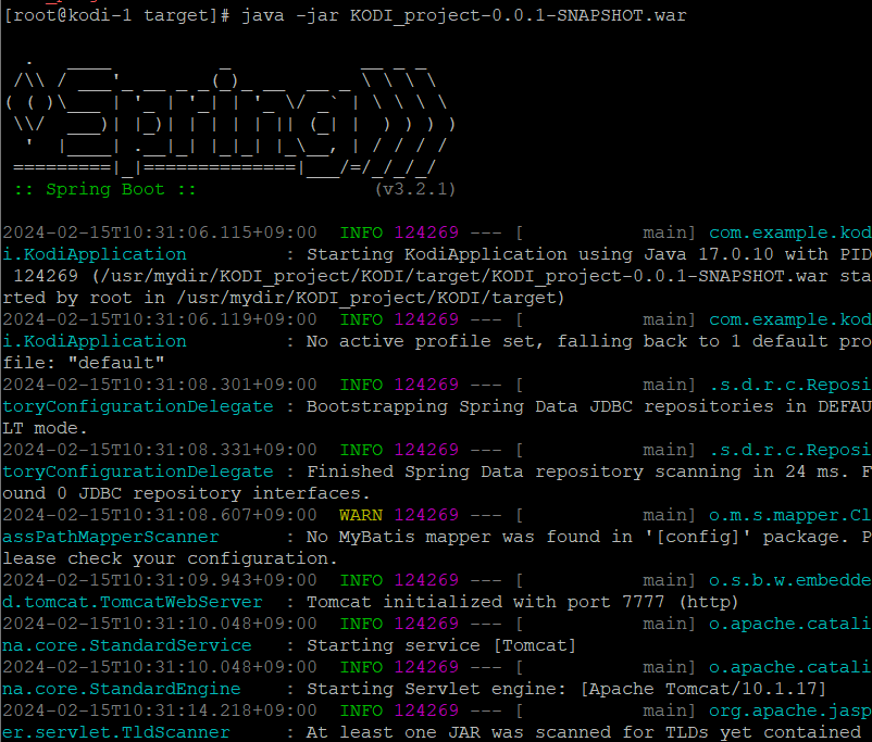 - KODI_project-0.0.1-SNAPSHOT.war 이것만 $TOMCAT_HOME/webapps 밑에 복사
