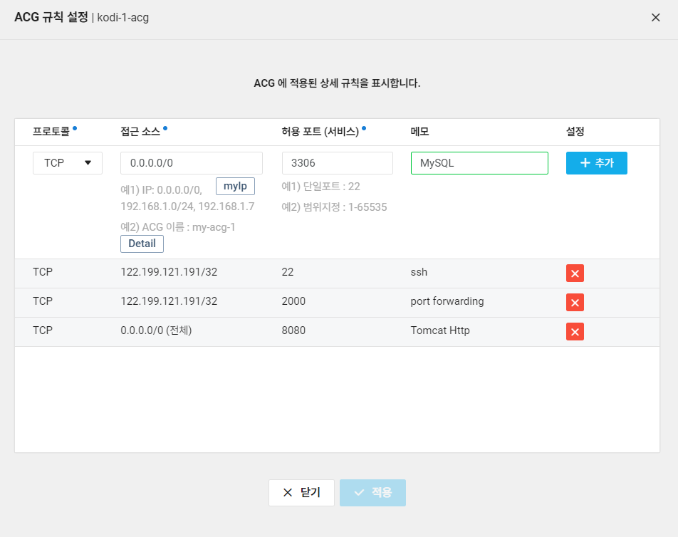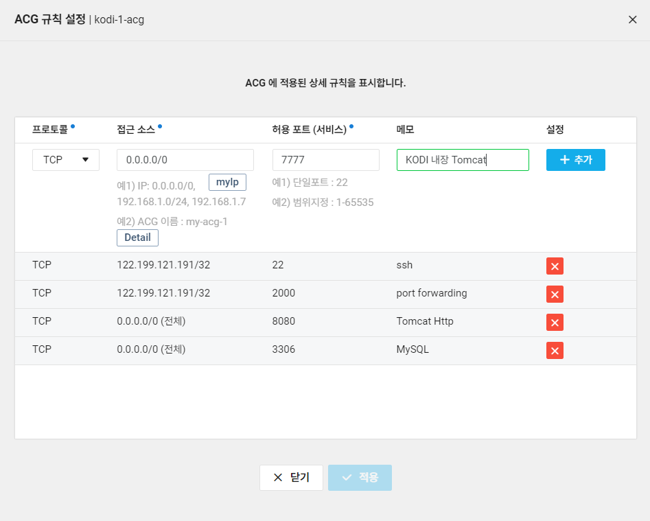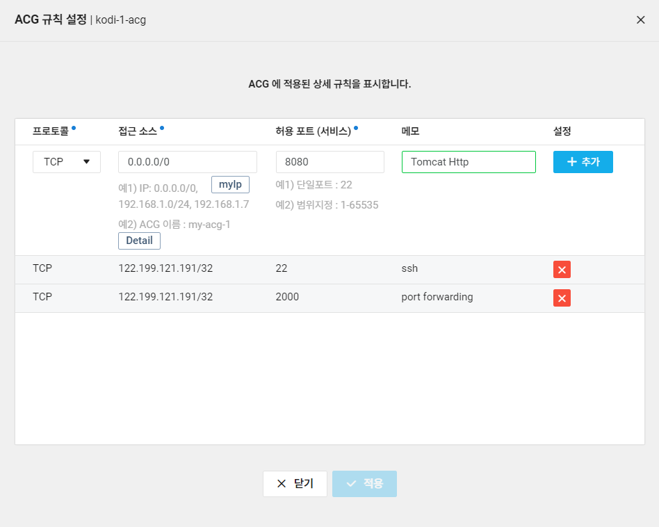 - 포트번호로 18080 사용하므로 ACG 규칙에 추가