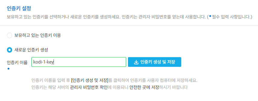 - 새로운 인증키 생성 및 저장