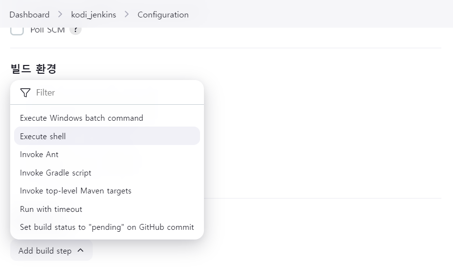 - Build Steps에 아래 코드 추가