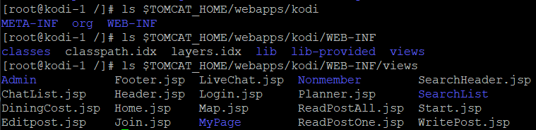 - ls $TOMCAT_HOME/webapps/kodi/WEB-INF/views