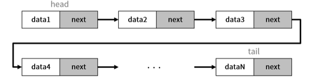 - 자료의 순서는 정해져 있지만, 메모리상의 연속성은 보장되지 않음