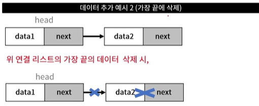- 데이터 삭제 위치(head, 중간, tail)에 따른 연결 작업 필요