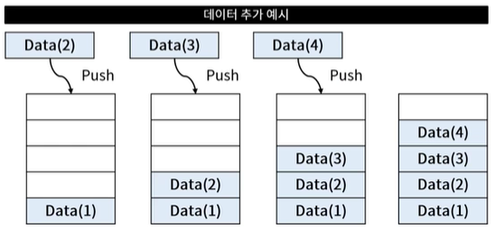 - 기본적으로 데이터 추가, 꺼내기, 스택 공간 확인 동작으로 이루어짐
