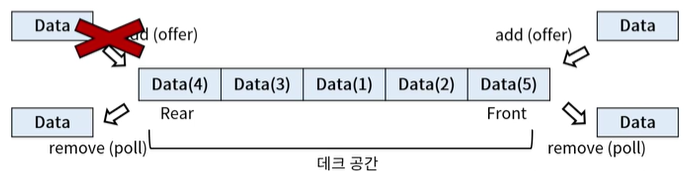 - 데크의 기본 구조는 양방향에서 삽입 삭제 가능한 구조