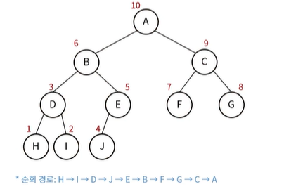 - 방문 순서: 왼쪽 노드 -> 오른쪽 노드 -> 현재 노드