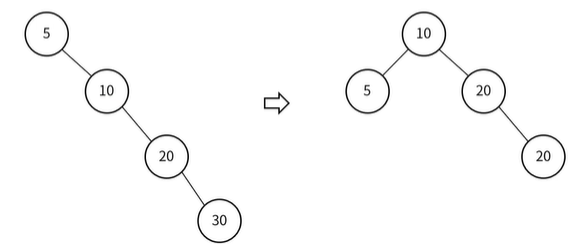 - Case 2) 이진 탐색 트리에 삽입되는 순서: 5 -> 10 -> 20 -> 30