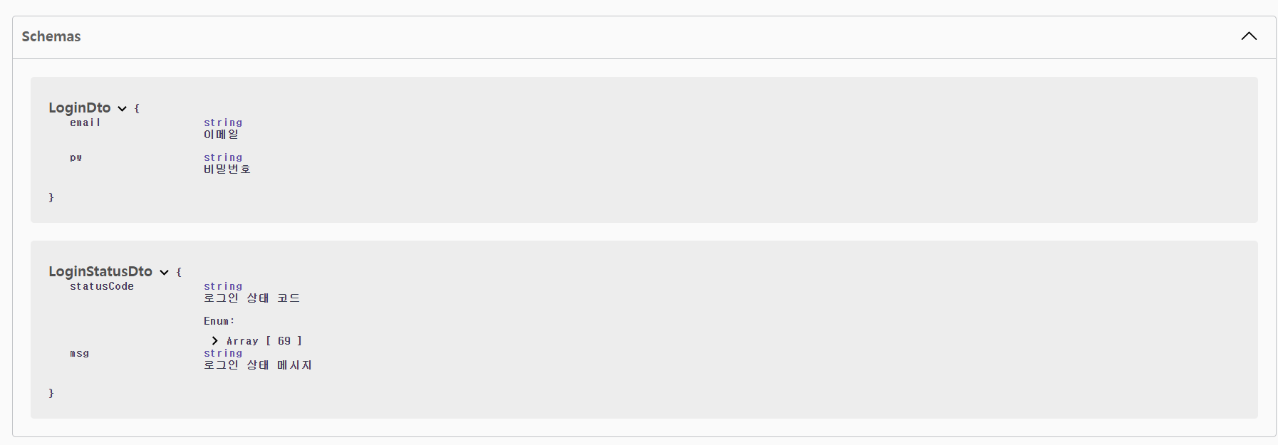 - ex) @Operation(summary = "로그인 API", description = "이메일과 비밀번호를 통해 로그인 성공 여부를 확인합니다.")