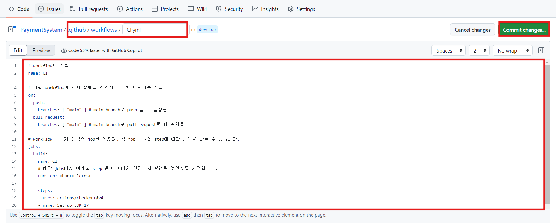 branches: [ "main" ] # main branch로 pull request될 때 실행됩니다.
