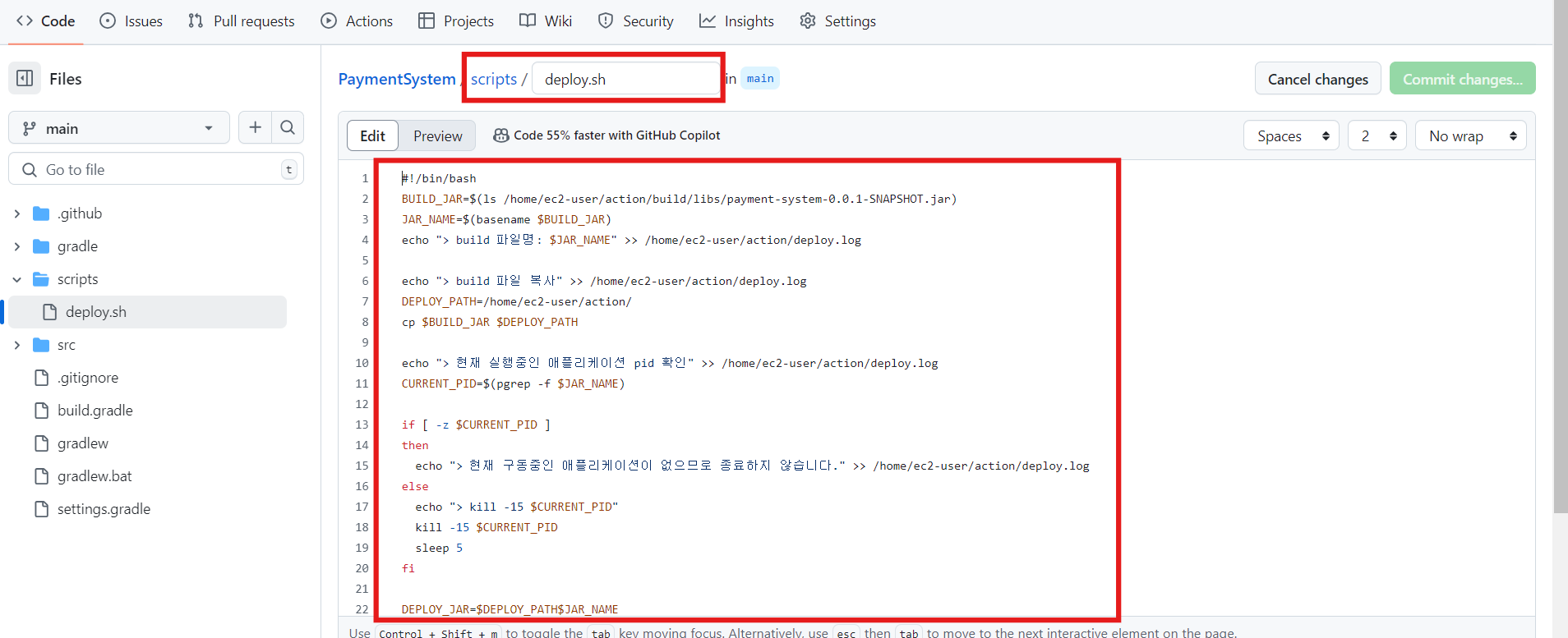 echo "> $DEPLOY_JAR DEPLOY_JAR 배포" >> /home/ec2-user/action/deploy.log