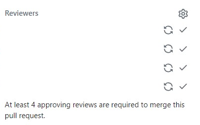 0. 브랜치 규칙 설정 https://techblogs.tistory.com/169 [Github] Organization 브랜치 규칙 설정 팀 프로젝트를 할 때 브랜치 규칙을 정하지 않으면 마음대로 merge 해서 충돌날 가능성이 크다. 따라서 브랜치 규칙을 정해 몇명 이상 approve를 해야 merge할 수 있도록 설정한다. 1. 규칙 적용할 브 techblogs.tistory.com 1. PR 올리면서 생겼던 문제점 main 브랜치에 팀원들이 마음대로 merge 할 수 없게 브랜치 규칙을 설정했다. 브랜치 규칙에서 설정한 approve 개수만큼 다 받았다. 그런데 이상한게 초록 체크가 아니라 회색 체크로 뜬다.. 그리고 계속 Reivew가 필요하다고 하면서 merge가 막힌다. 2. 해결방안 에러..